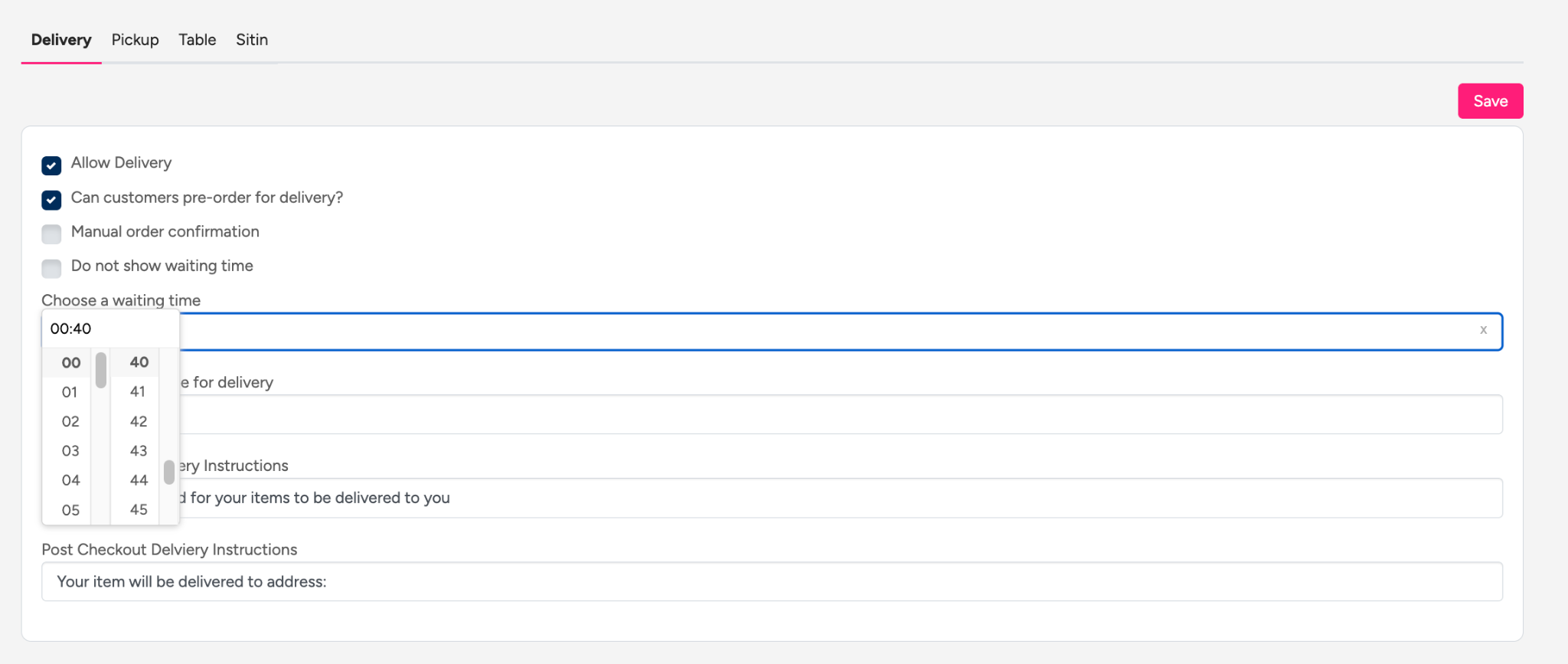 The system allows up to 24 hours (24:00), but we don't recommend setting waiting times over 2-3 hours for most businesses. Very long waiting times may discourage customers from ordering.